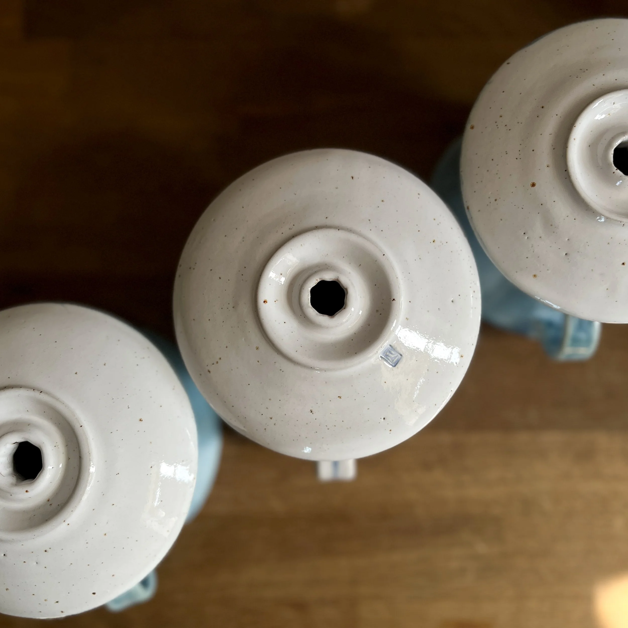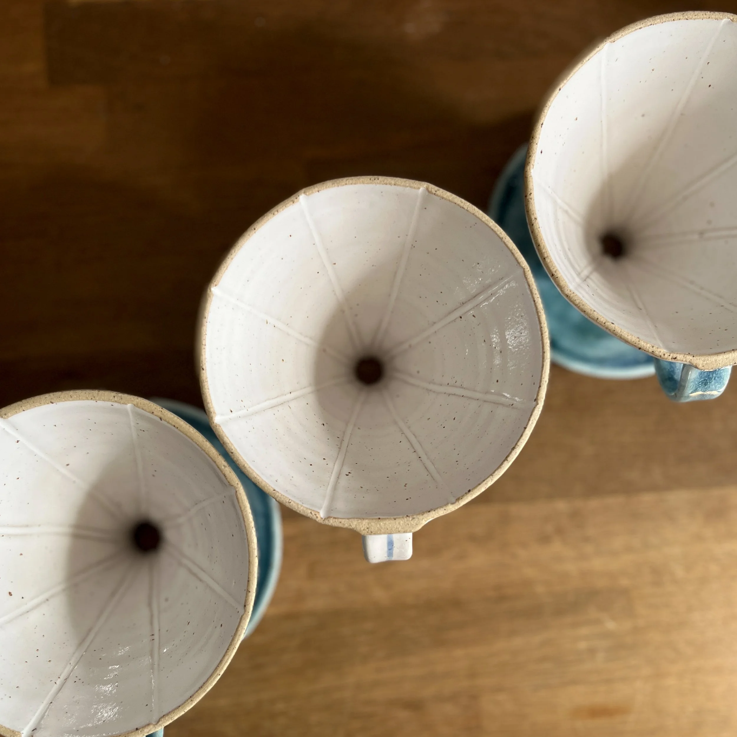 Materials - Flecked Stoneware with tin white interior glaze and a sea blue exterior glaze